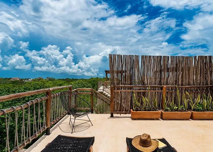 To enjoy your vacation in Tulum, stay at @Villa.Akbal- 2Bd Rooftop W/ Open Dinning Room Tulum, which is 1.4 miles from Jungla Maya Native Park and around 10 minutes' drive from Carlos.